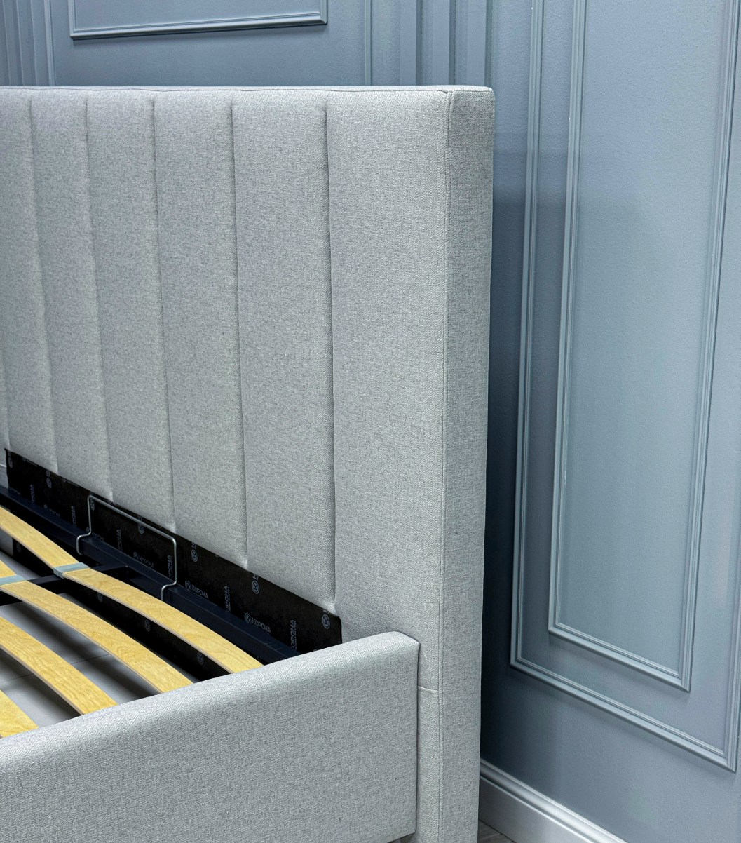 • Cпинка оптимальной высоты, благодаря чему кровать хорошо будет смотреться в спальной комнате как с невысокими, так и с высокими потолками.
