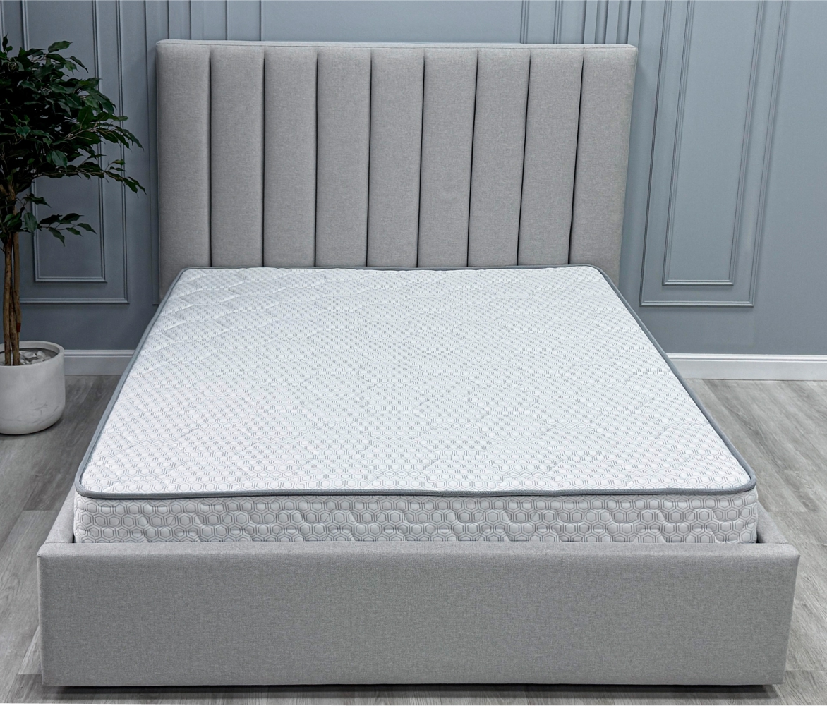 Короб ППУ - Элемент конструкции матраса, усиливающий жесткость пружинных моделей по краям, предотвращая проседание при регулярной нагрузке. Особенно важен при локальных нагрузках на борт матраса (посадка, подъем). Используются два вида пен: стандартная у изголовья и повышенной плотности в боковых зонах.