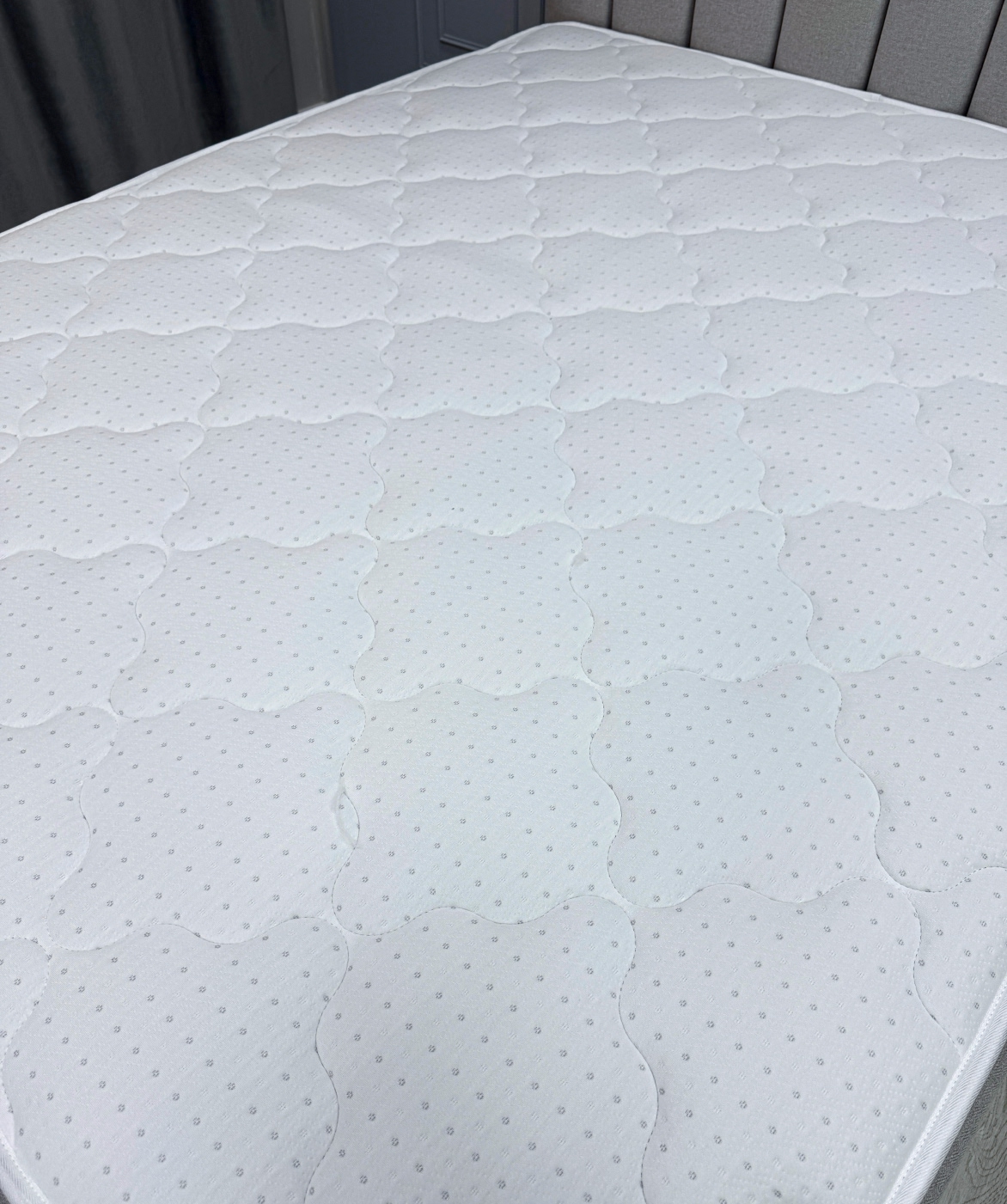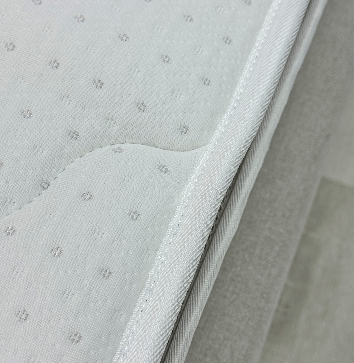 Чехол матраса простеган комбинированной стежкой с наполнителем из синтепона плотностью 300 г и пеной толщиной в 10 мм. Данная комбинация позволяет дольше сохранять пышность чехла при длительной эксплуатации.