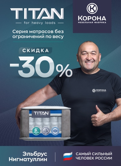 Серия матрасов «Titan» с безлимитной весовой нагрузкой разработана совместно с чемпионом по силовому экстриму и пауэрлифтингу Эльбрусом Нигматуллиным.